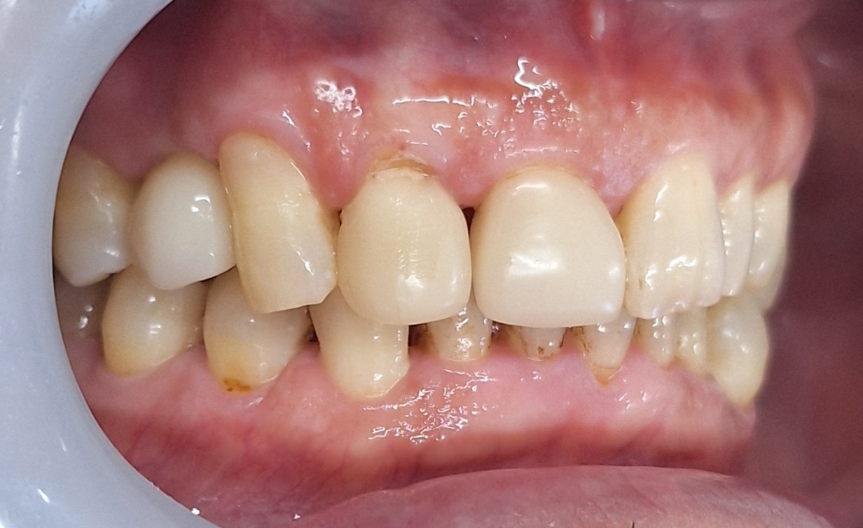 | 備考 | 右上2番の被蓋改善に苦労したのと、外傷でピンクスポットがみられていたが、途中で右上1番の神経がやられてしまい、根の治療も行った為時間を要した。 |