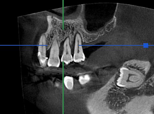 | 備考 | CT画像より右上4番の近心歯周ポケットが根尖近くまで存在し、口蓋側まで繋がっており、予後不良と判断してインプラント治療を行う予定とした。 右上5番は口蓋側に根尖付近のポケットがあったが咬合性外傷による動揺であり、保存可能と判断。 4番骨造成時にフラップ手術を行った。 |